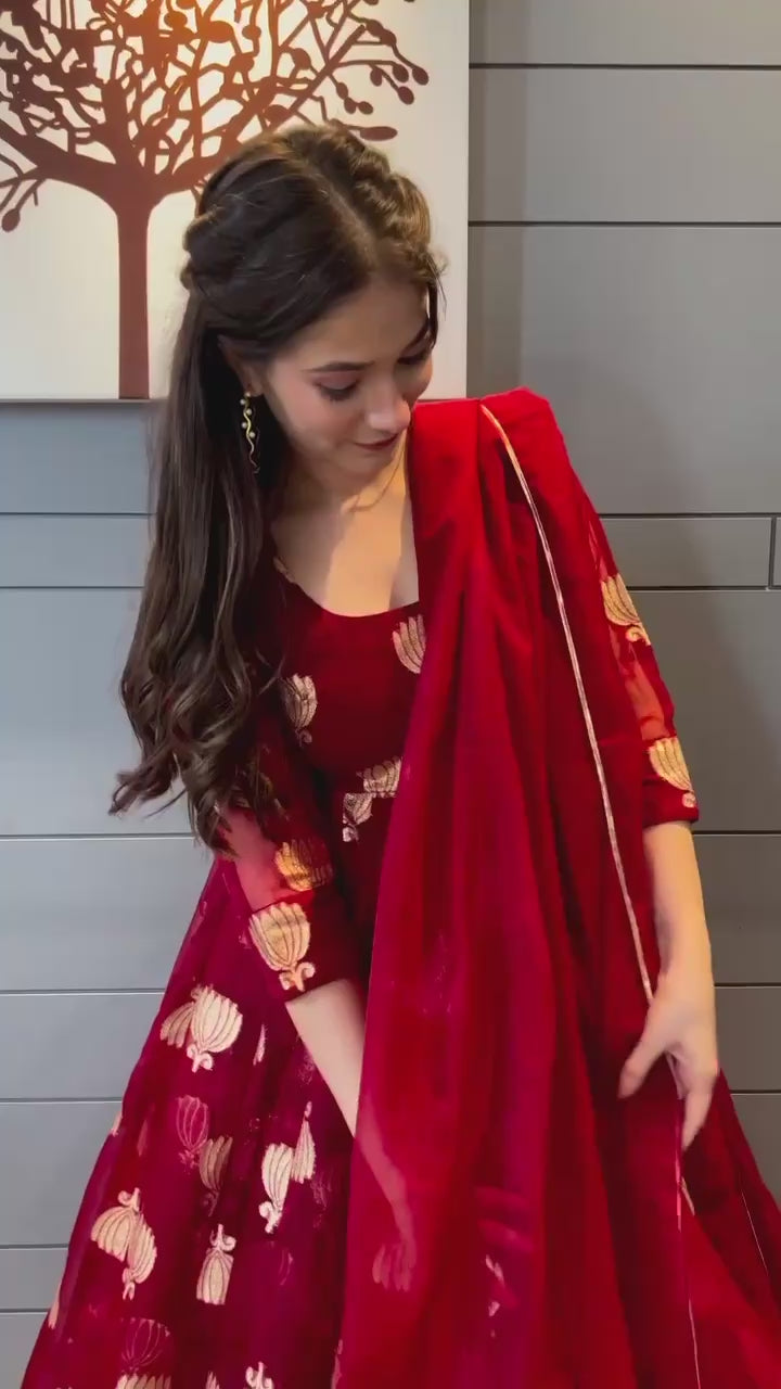 red Color Lowest Price Velvet gown for girls